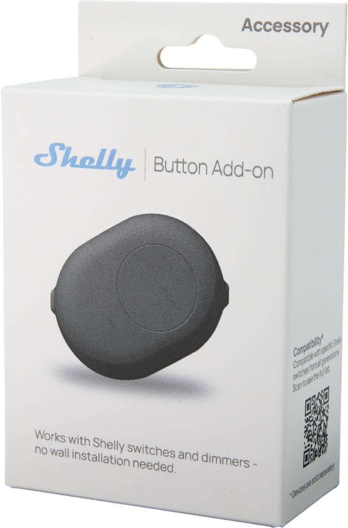 *Benötigt ein Shelly Relais oder einen Shelly Dimmer – nicht für den eigenständigen Betrieb geeignet. Mit einer Vielzahl von Shelly Gen1-, Gen2-, Gen3- und Gen3-Mini-Relais und -Dimmern kompatibel